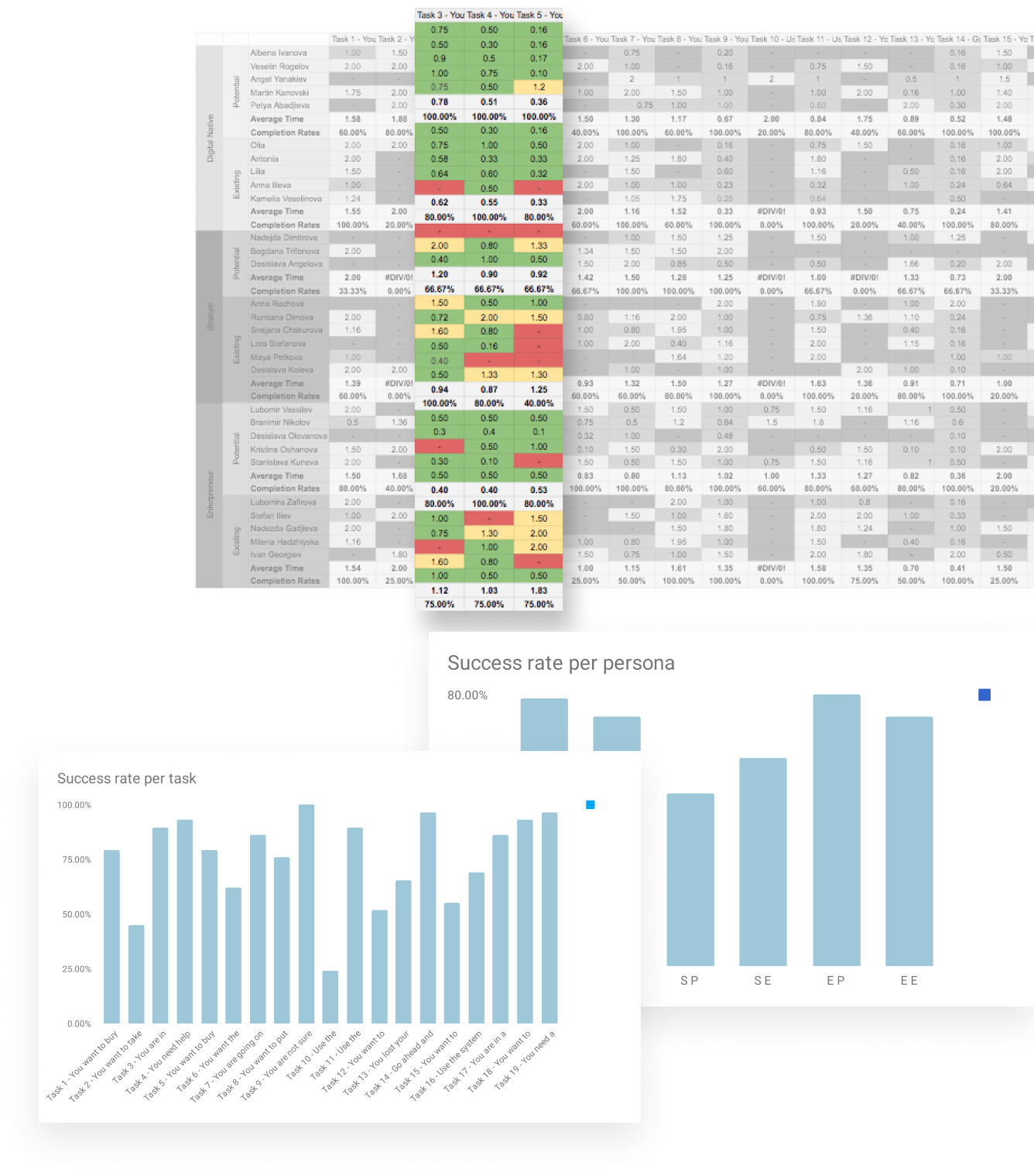 We perform both live user tests and remote usability testing. If the team is working on reimagining the existing client product, we perform 2 rounds of testing: with existing solution and testing the new approach.